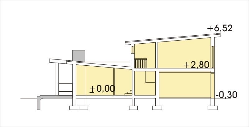 The interior of the house is a large open interpenetrating spaces. A representative hall leads directly to the fireplace in the spacious living room. Stairs are a decorative part here and complete the interior design. The large kitchen has the option of being completely separated from the living room by means of double-leaf doors. The dining room was located in the most atmospheric place of the house, where the windows reach from the ground to the ceiling! In the summer, they can be spread apart to feel like having a picnic while consuming . Next to the kitchen is a pantry passerby , which facilitates unloading purchases. Thanks to the large glazing in the dining room and living room and partly covered terraces, family life intertwines between the interior of the house and the garden.